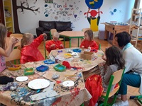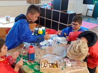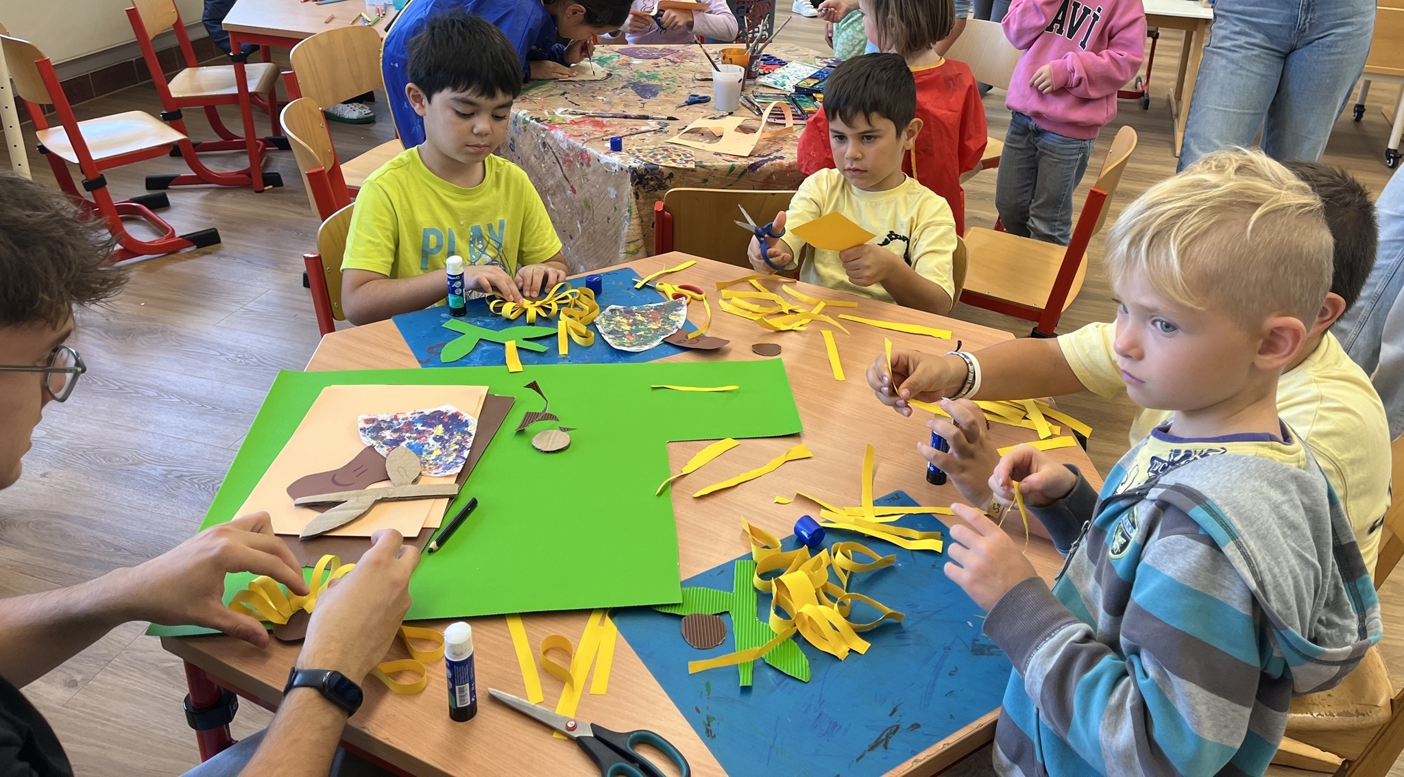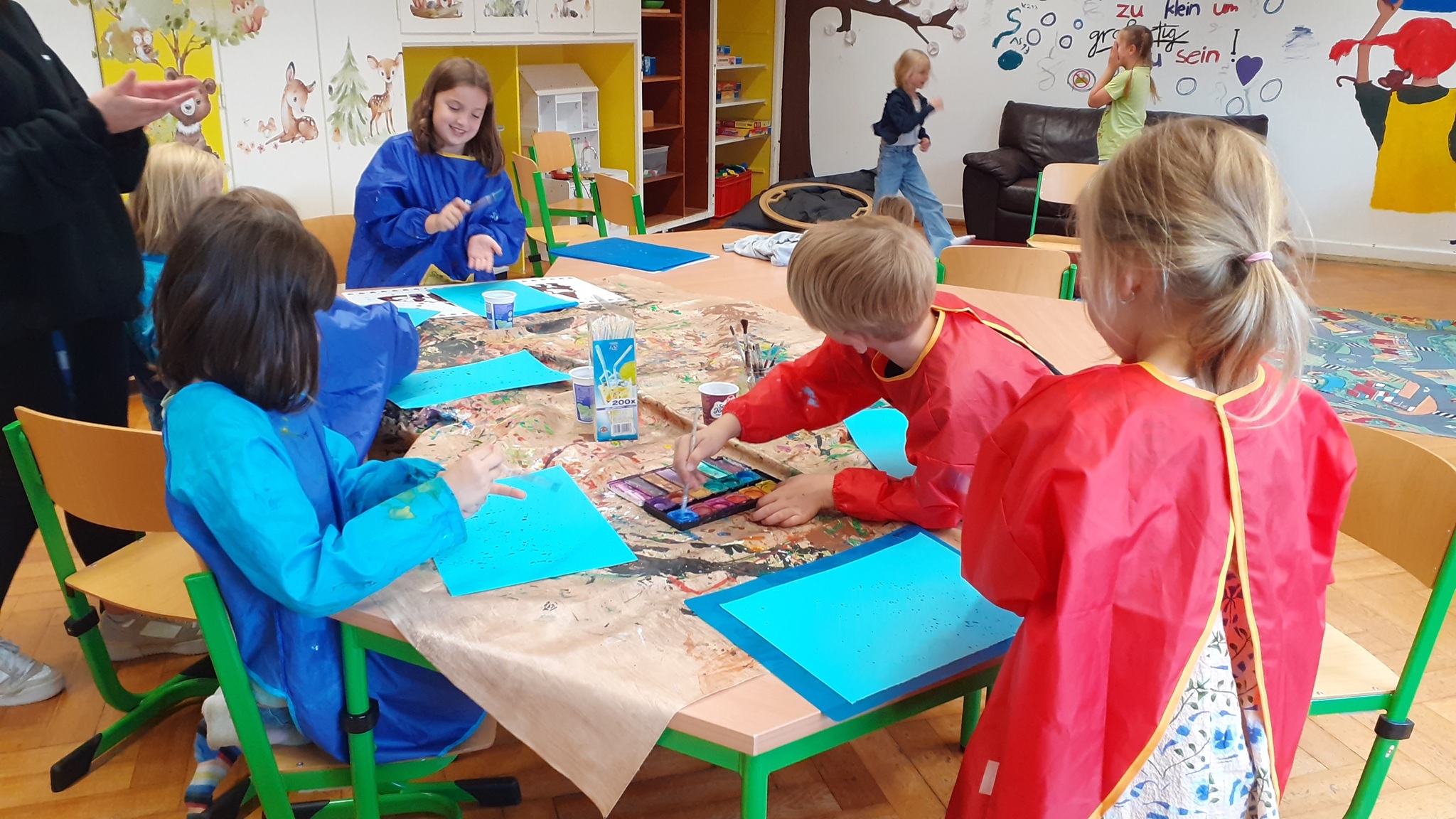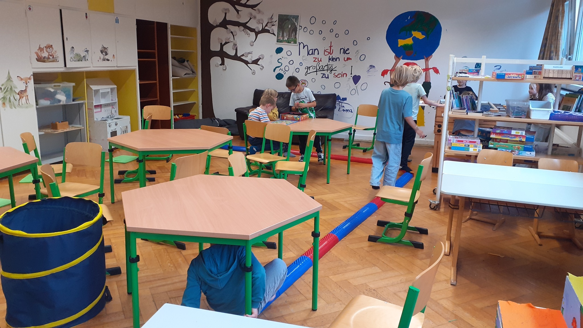 In der letzten Woche wurde es dann ganz schön voll – 16 zukünftige Erstklässler nahmen an der Betreuung teil, so viele wie noch nie zuvor! Gemeinsam haben wir bunte Waffeln gebacken, Herbst-Deko für die Fenster und Traumfänger für zu Hause gebastelt. Bei der Schlechtwetter-Spieleolympiade haben wir im ganzen Haus verschiedene Spielstationen angeboten und die Kinder konnten dort ihr Können unter Beweis stellen. Das Highlight der Woche war dann der „Chill-Tag“ am Freitag. Bei Kakao und Keksen hörten die Kinder in ihren selbstgebauten Höhlen spannende Hörspiele und konnten sich nochmal richtig ausruhen, bevor für die meisten am Montag (und für die zukünftigen Erstklässler am Donnerstag) der Schulalltag begann.