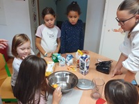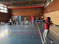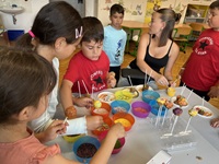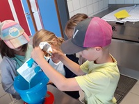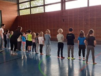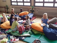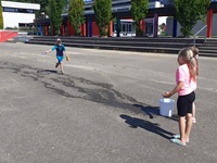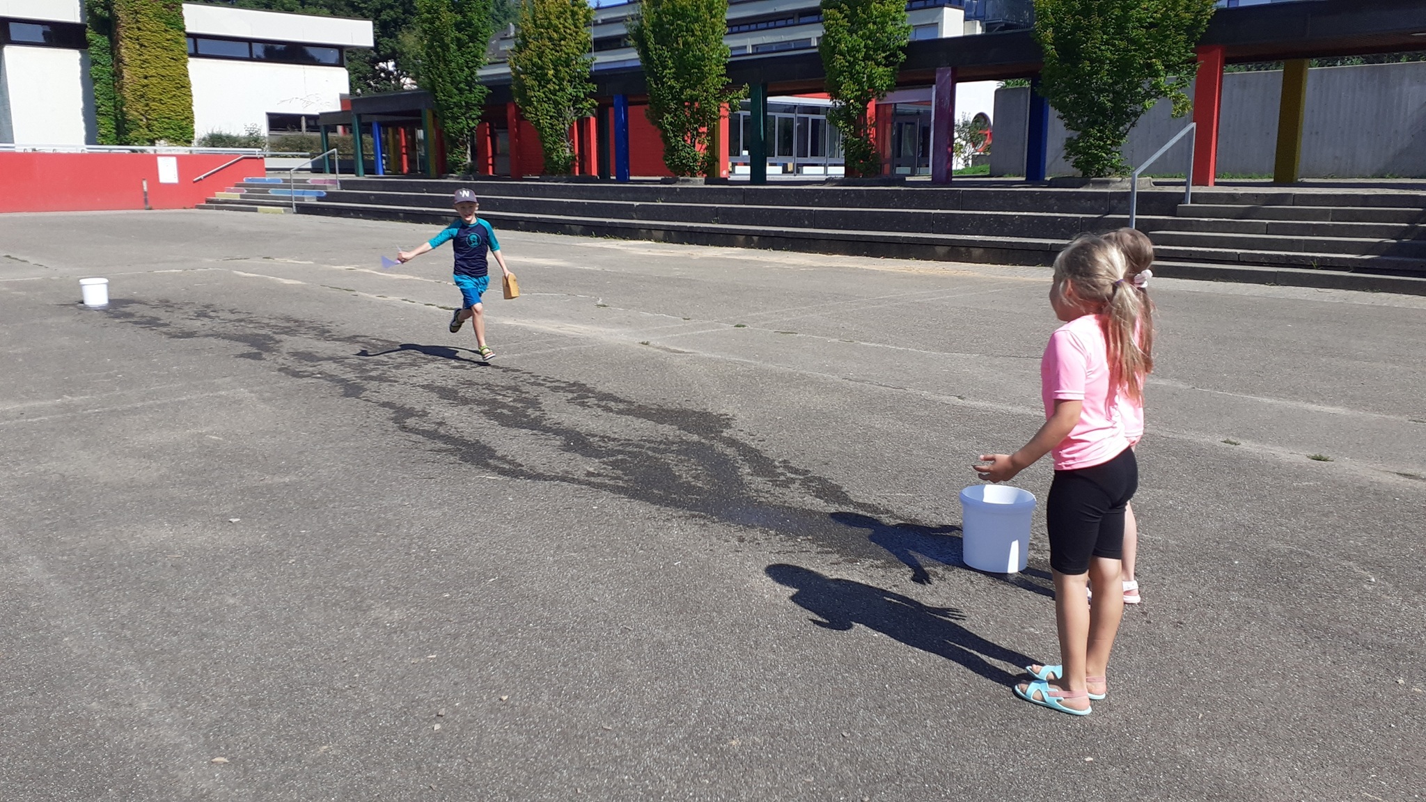In der ersten Ferienwoche durften sich unsere beiden FSJ-ler einen Tag raussuchen und zum Abschied selbst gestalten. Am Moritz-Tag gab es Wasserspiele auf dem Schulhof, mit Ina haben wir Stockbrot im Schulgarten gemacht. Leider fiel unser Picknick im Garten einer Kollegin ins Wasser, wir haben stattdessen ein großes Picknick mit Mitbring-Frühstücksbüffet im ehemaligen Foyer der GTB veranstaltet. Der richtige Ferienstart wurde dann am Freitag mit einer Ferien-Party im Jugendhaus CUBE gefeiert.