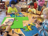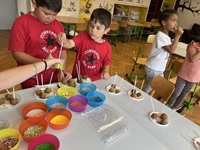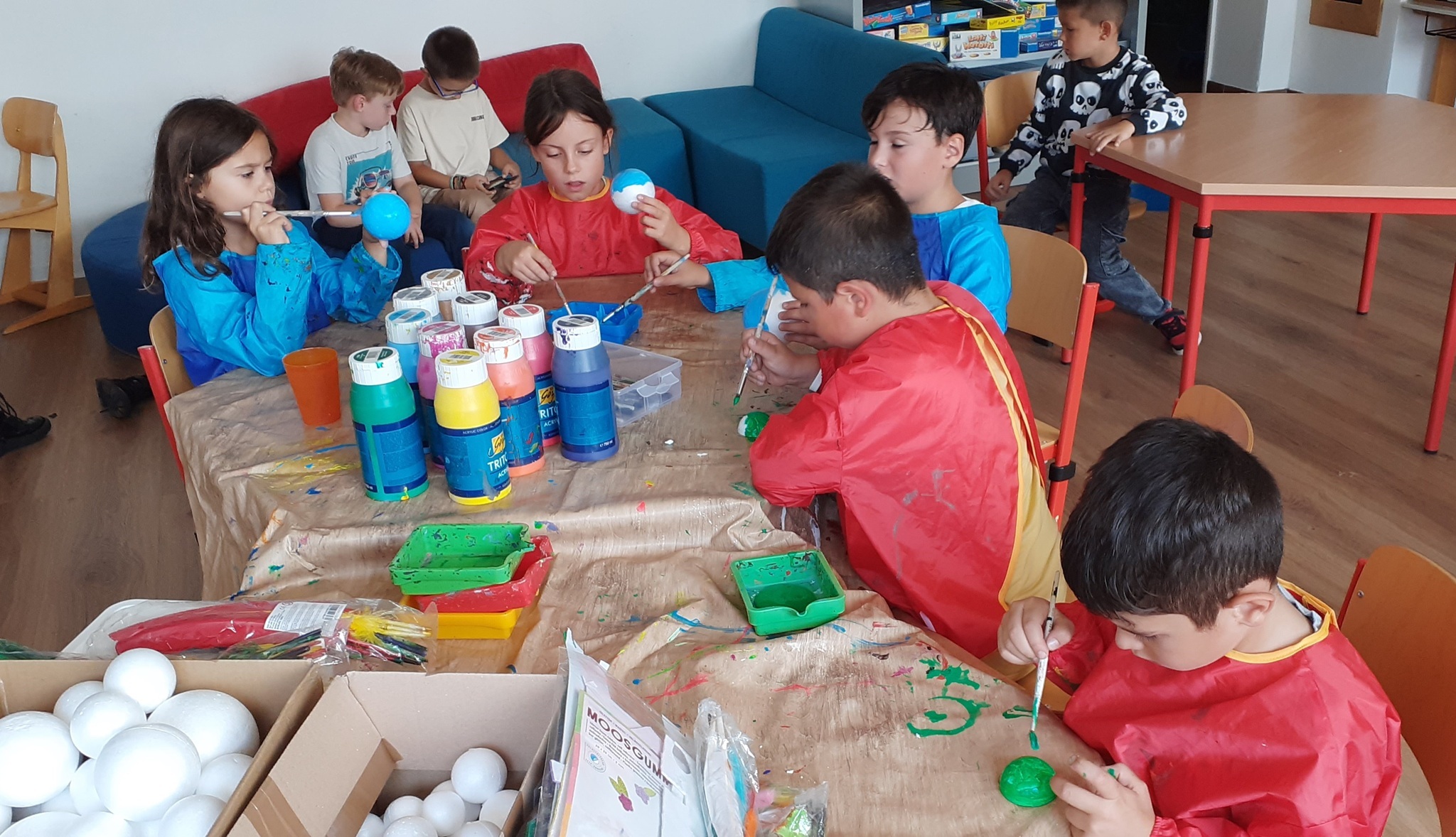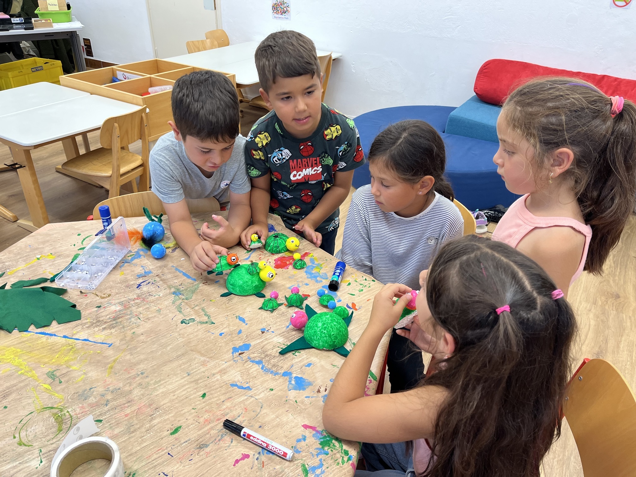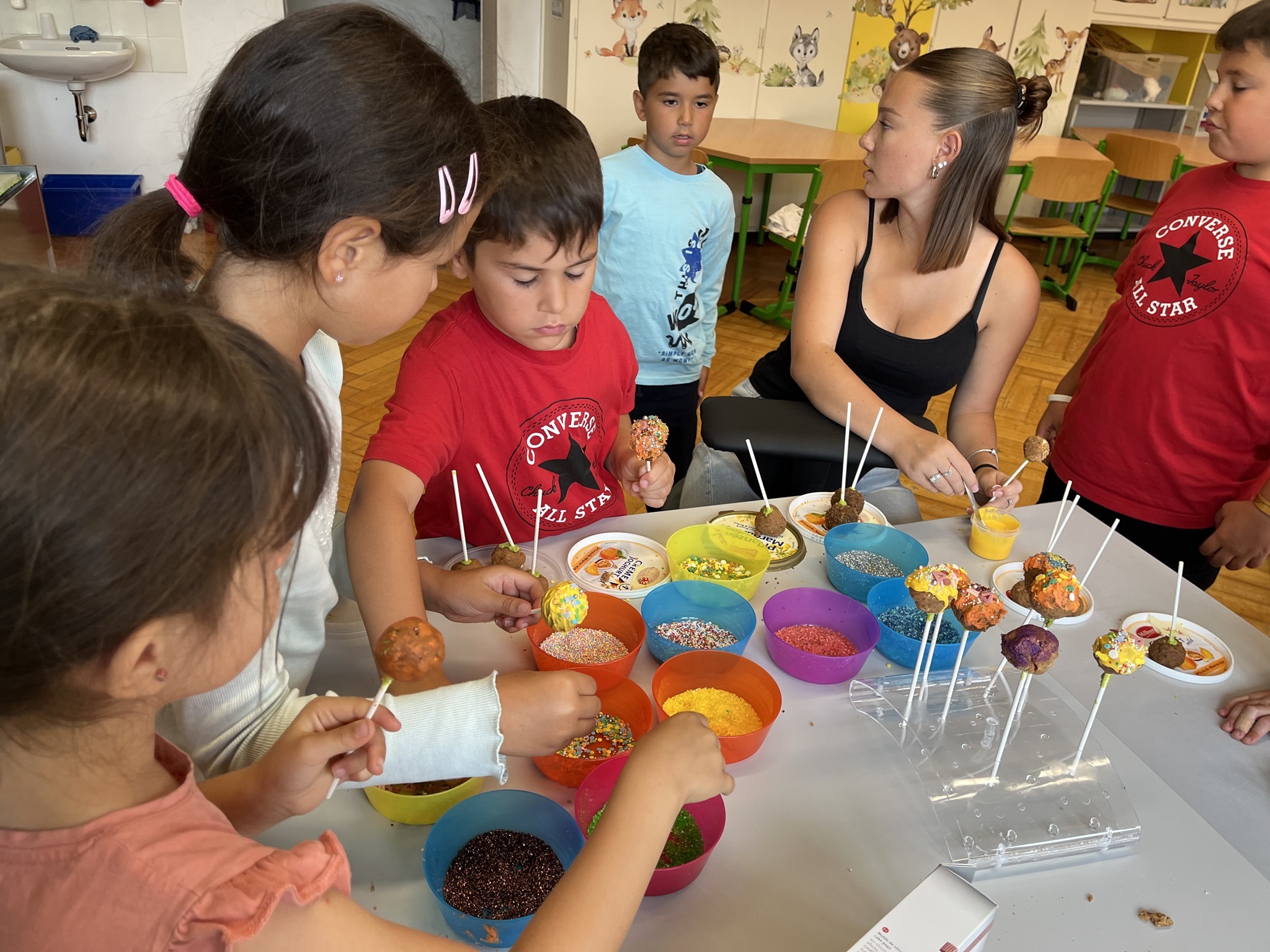 Die vorletzte Ferienwoche hatte das Motto „alles ist rund“. Angefangen haben wir mit einem Blick auf die Weltkugel – jedes Kind durfte sein Urlaubsziel in den Sommerferien suchen und eine Spielfigur platzieren. Beeindruckend, welche Reiseziele die Kinder vorweisen konnten! Es wurden bunte Cake Pops gestaltet und natürlich gegessen, außerdem haben wir lustige Tiere aus Styroporkugeln gebastelt. Den ursprünglich geplanten Ausflug zur Murmelbahn nach Denkendorf mussten wir wetterbedingt absagen, stattdessen durften sich die Kinder eigene Murmelbahnen basteln. Am letzten Tag sind wir in die Sporthalle, es wurden verschiedene Ballspiele gespielt.